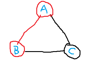 如图,杂色三角形一定包含A点和B点两个杂色边